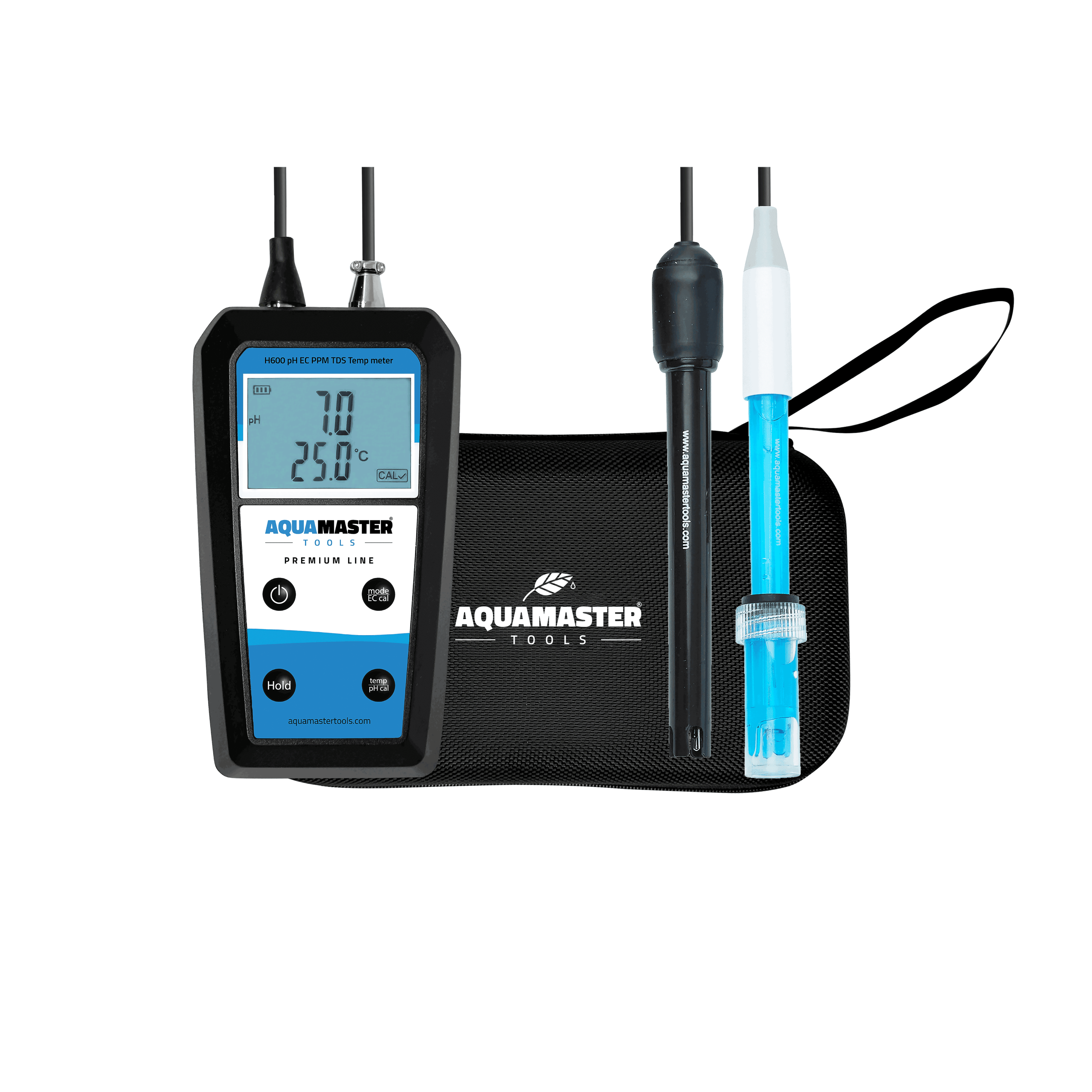 The Aqua Master Combo Meter H600 Pro is a versatile, professional handheld meter. It accurately measures pH, EC, PPM, TDS, and temperature in liquids. Combining precision, ease of use, and durability, the H600 Pro suits hydroponics, horticulture, water treatment, and general liquid analysis.