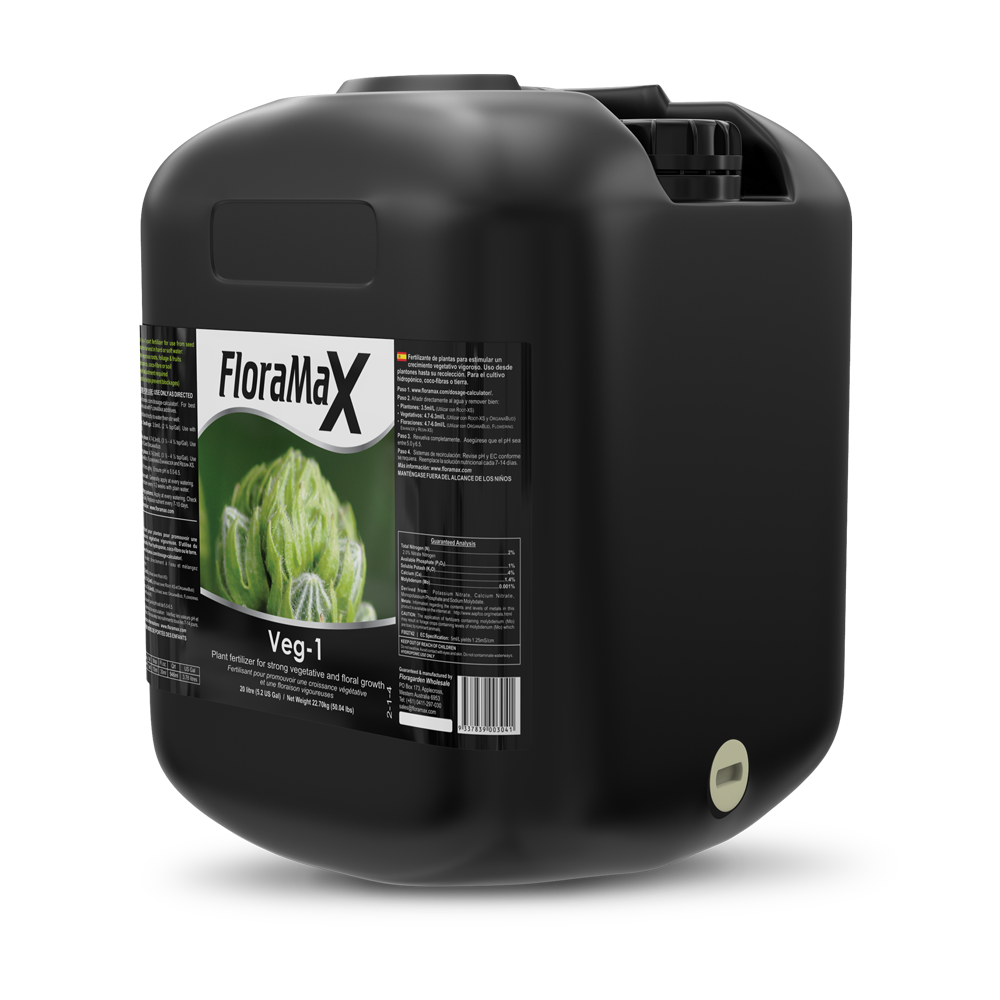 FloraMax Veg-1 is a single-bottle base nutrient that delivers complete nutrition for both veg and bloom without the need for Cal-Mag.