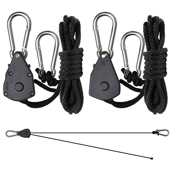 When using rope ratchet hangers, ensure that your ceiling fixtures or tent frame can support the weight you intend to suspend. For the full 68kg capacity, your fixtures or frame must be very strong and secure. Additionally, avoid damaging the rope by keeping it away from abrasive or sharp surfaces and preventing it from being pinched, as this can reduce its weight capacity and lifespan.